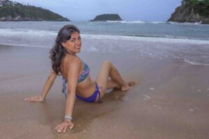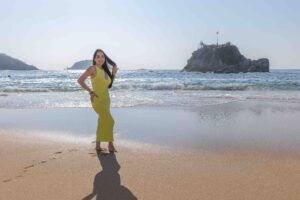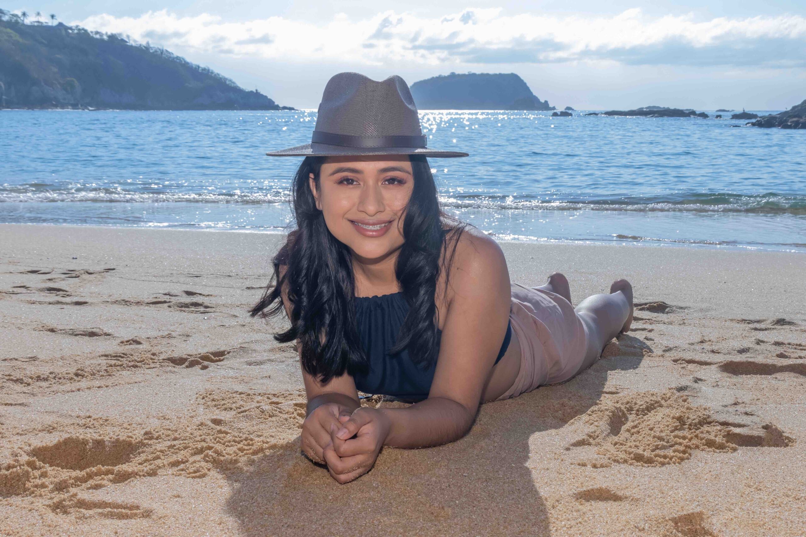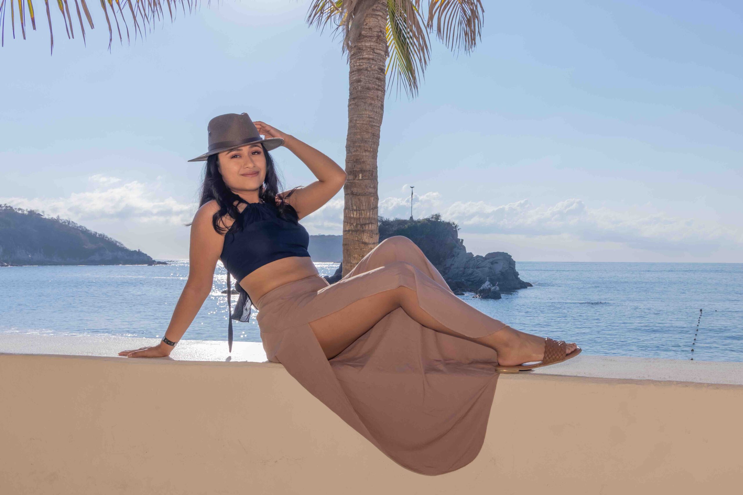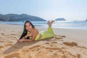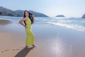 “Una sesión fashion en la playa para divertirse con estilo y clase, luciendo elegancia sobre la arena dorada mientras la brisa del mar da vida a cada movimiento.”